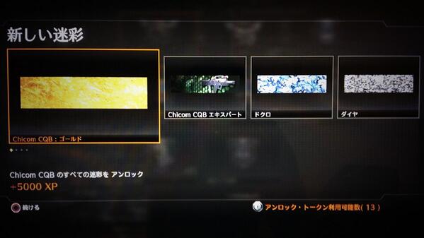 Yoshitaka815 - Black Ops II Game Clip またも懲りずにFFAです。 なんだかんだで、CQBマスター。SMGのダイヤ迷彩をゲット出来ました。 嬉しい!! で、ちょっと浮き足立った所でファイナルキルされる訳で。 次はアサルトを全部金迷彩にします。頑張るぞ。 スチール×10が終わっていなかったので…。 こうやって見ると地味ですが、ダイヤ獲れました。嬉しい!! |